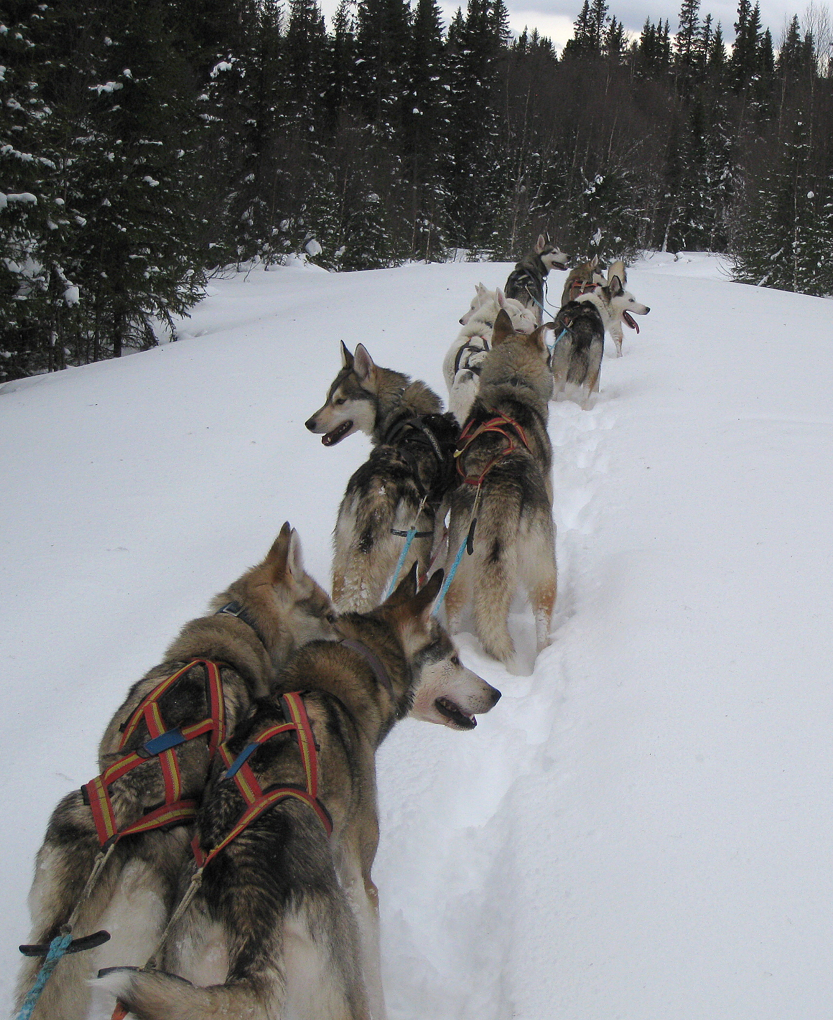 Polardistans är om 2 veckor och hundarna verkar att vara i bra form nu. I helgen körte vi en tur på 11 timer delvist osporat och alla hundarna var pigga vid hemkomst. Jag tyckar att det är bra för hundarna att köra ospårat längra sträckor, fast det inte går fort. Hundarna blir tuffa i skallen av att få jobba ospårat.