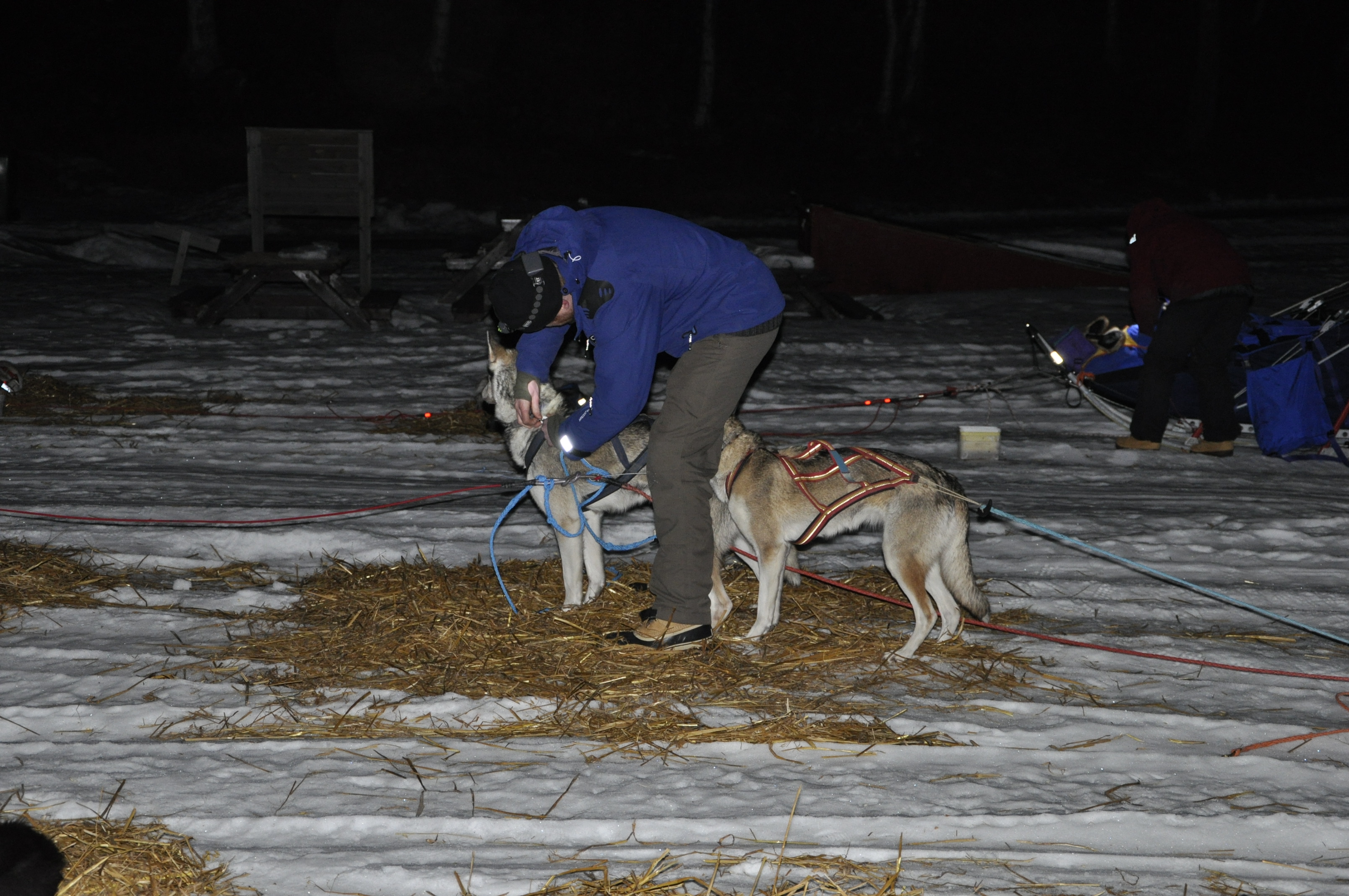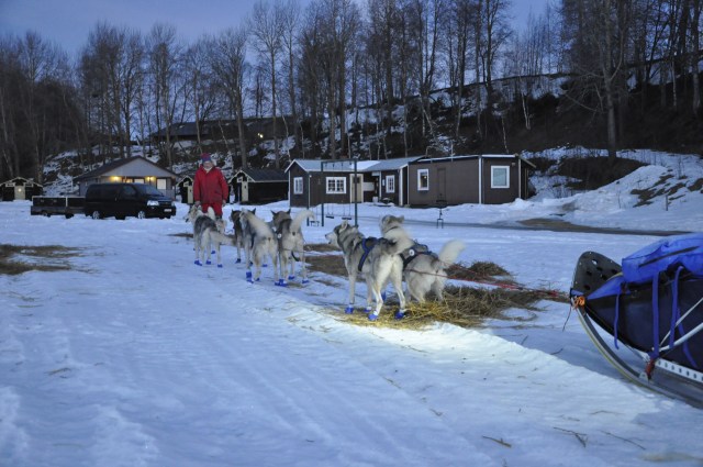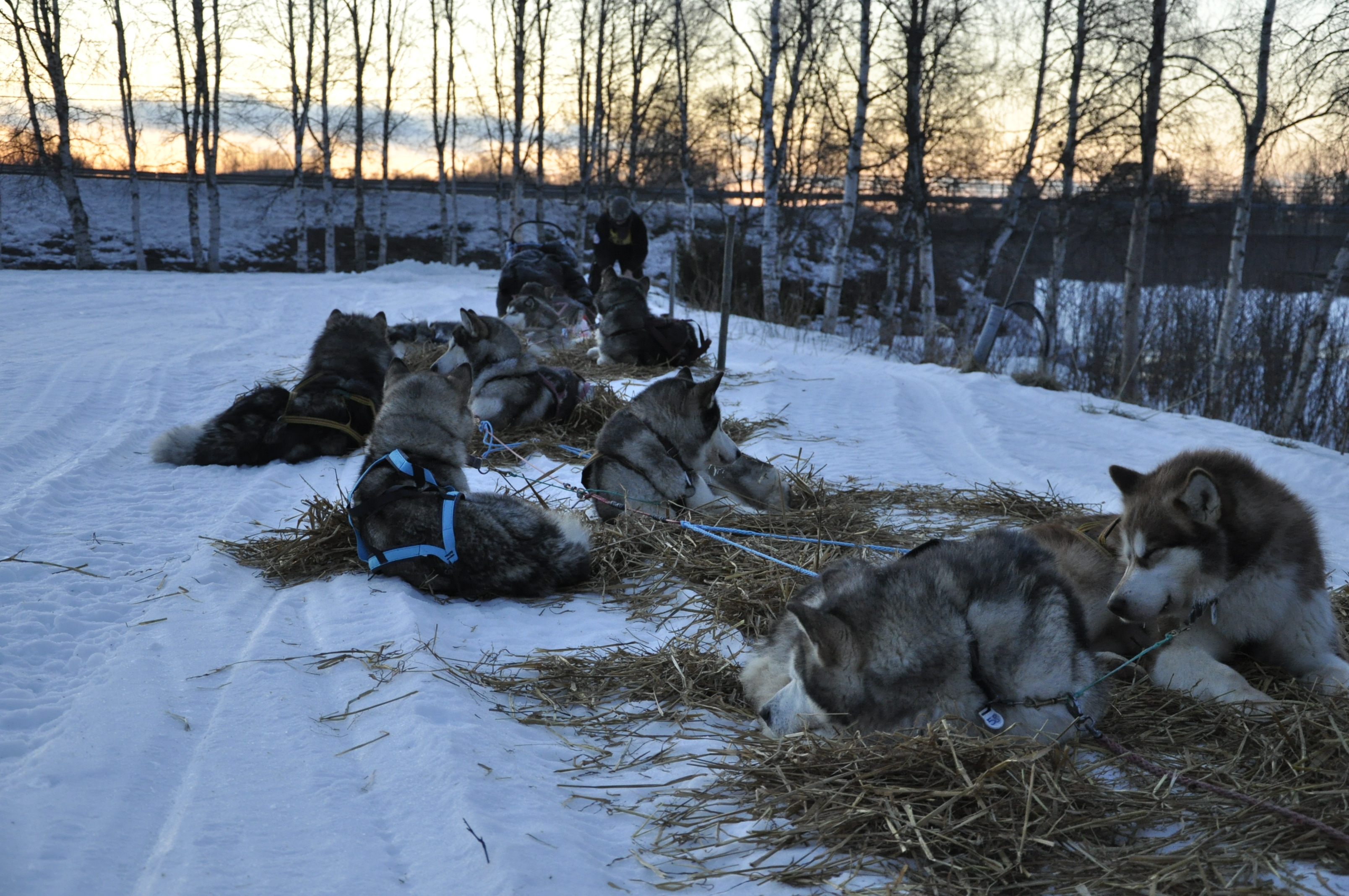 Jesper har fått sätta av Velo, da hon hade ett ömt handled, alla andre hundar verkade pigga da de drog ut mot Lövnäsvallen.