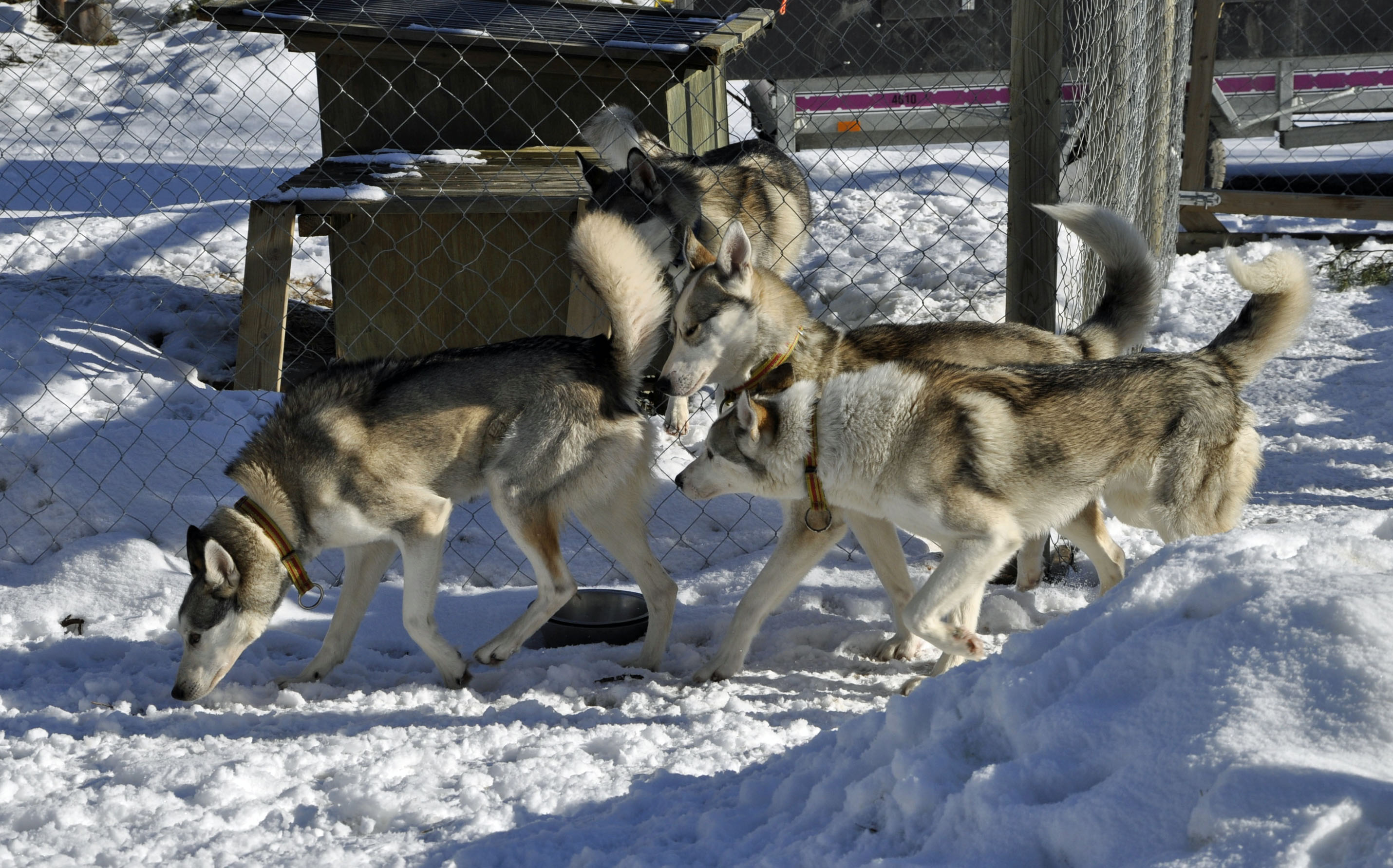 I natt kom det ca 4 cm snö och det blir straks vitt och fint över allt, inte minst i hundgårdarna. I samband med rastning idag passade jag på att muntra mig lite med kameran…