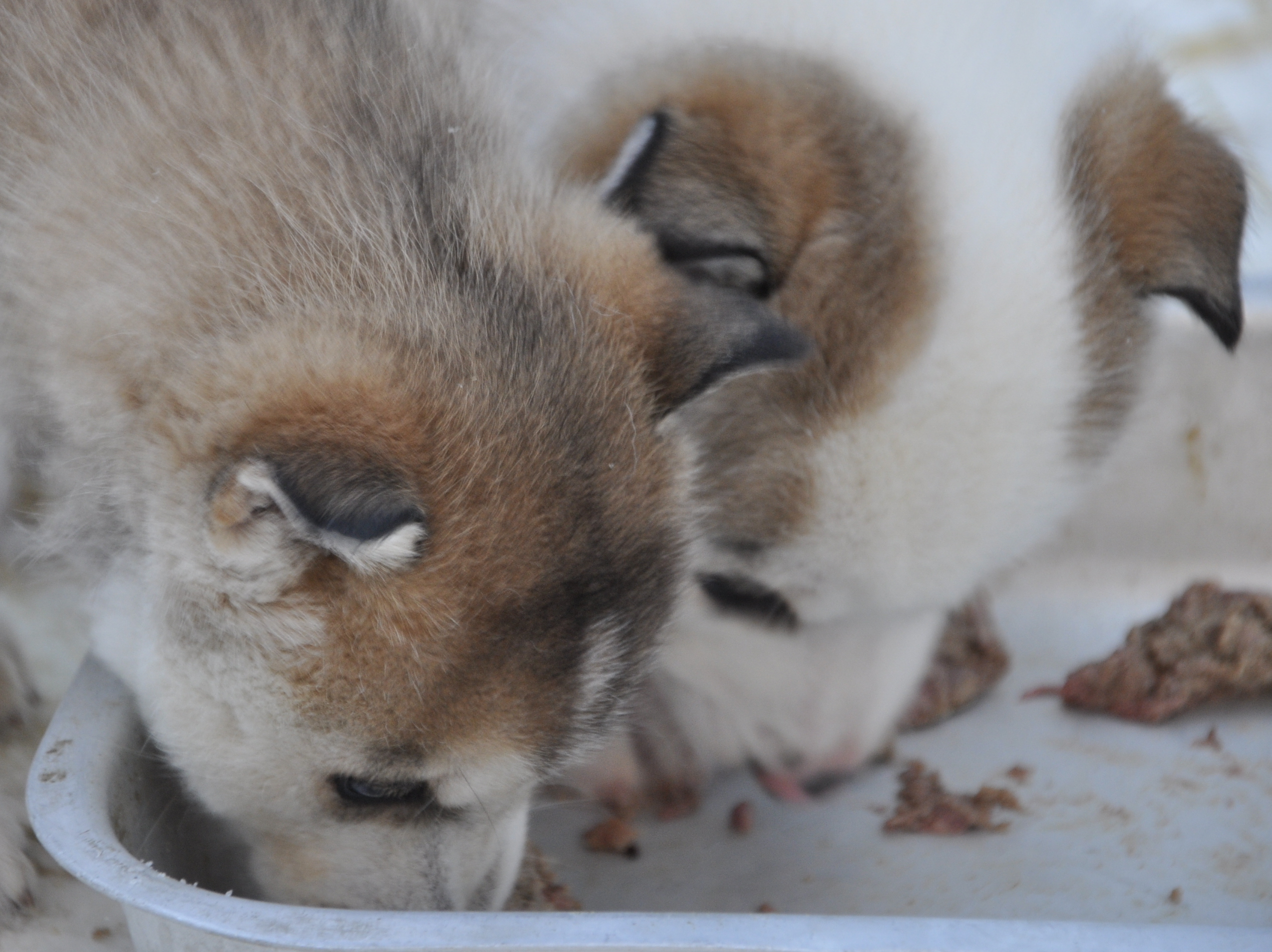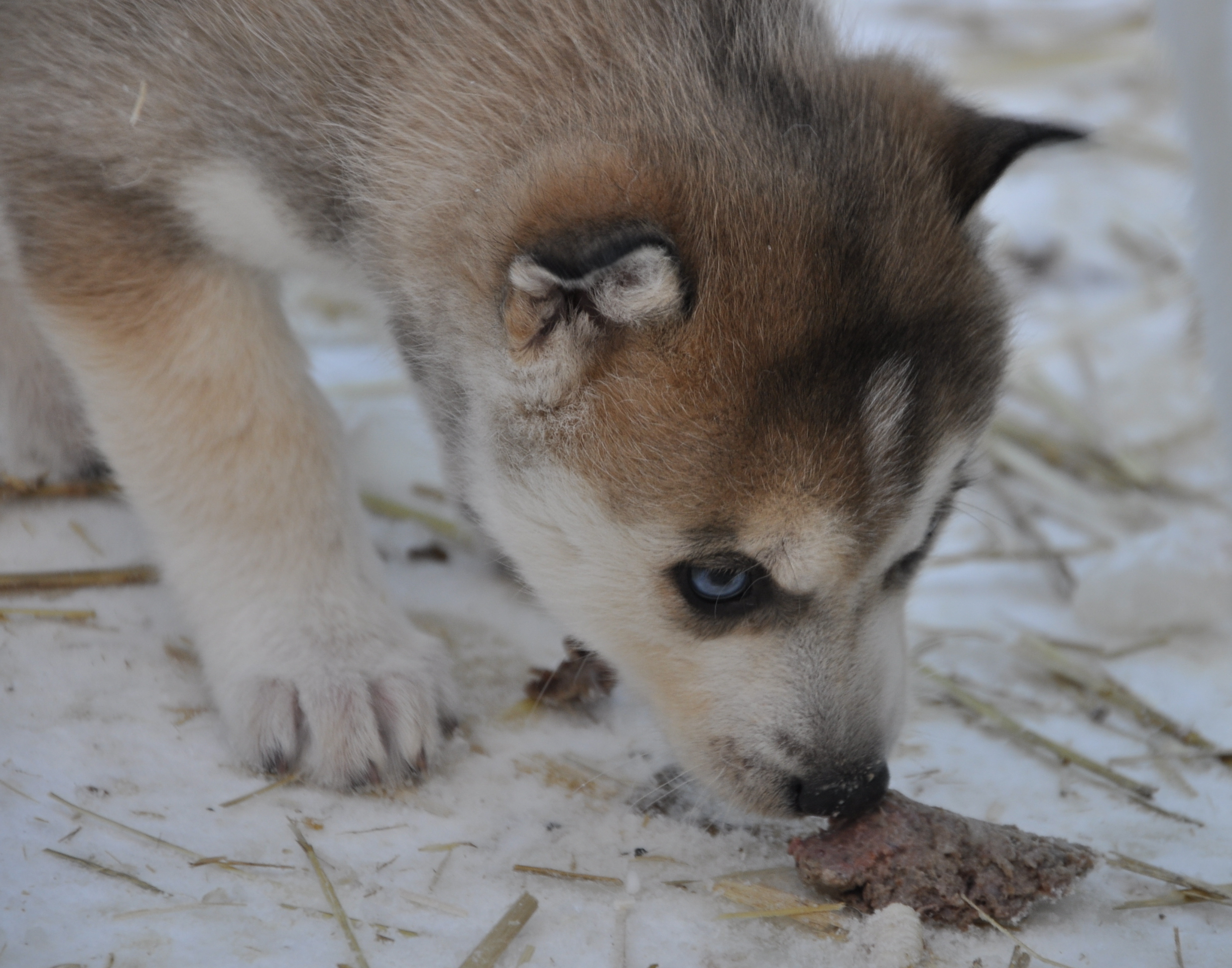 Oj va tiden den går fort, idag är de små liv 6 veckor och plötslig inte så små längre. Busiga som bara den och äter med god aptit. De har nu ökad antal måltider till 3 ggr pr dag. Morgon och kväll är det torrfoder men mitt på dagen får de färsk köttfoder. Det går inte lika fort som det uppblötade torrfoder men det kommer nog….