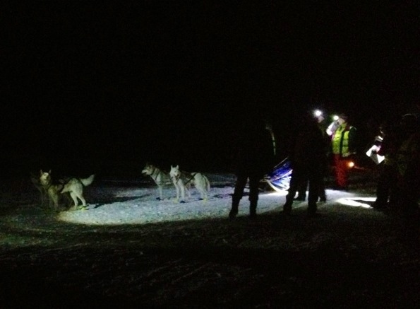 Kl 20:01 kom Jesper in på checkpointen i Djursvallen, ca 1 timme efter ledande spann nr 11 Eveline Kock.