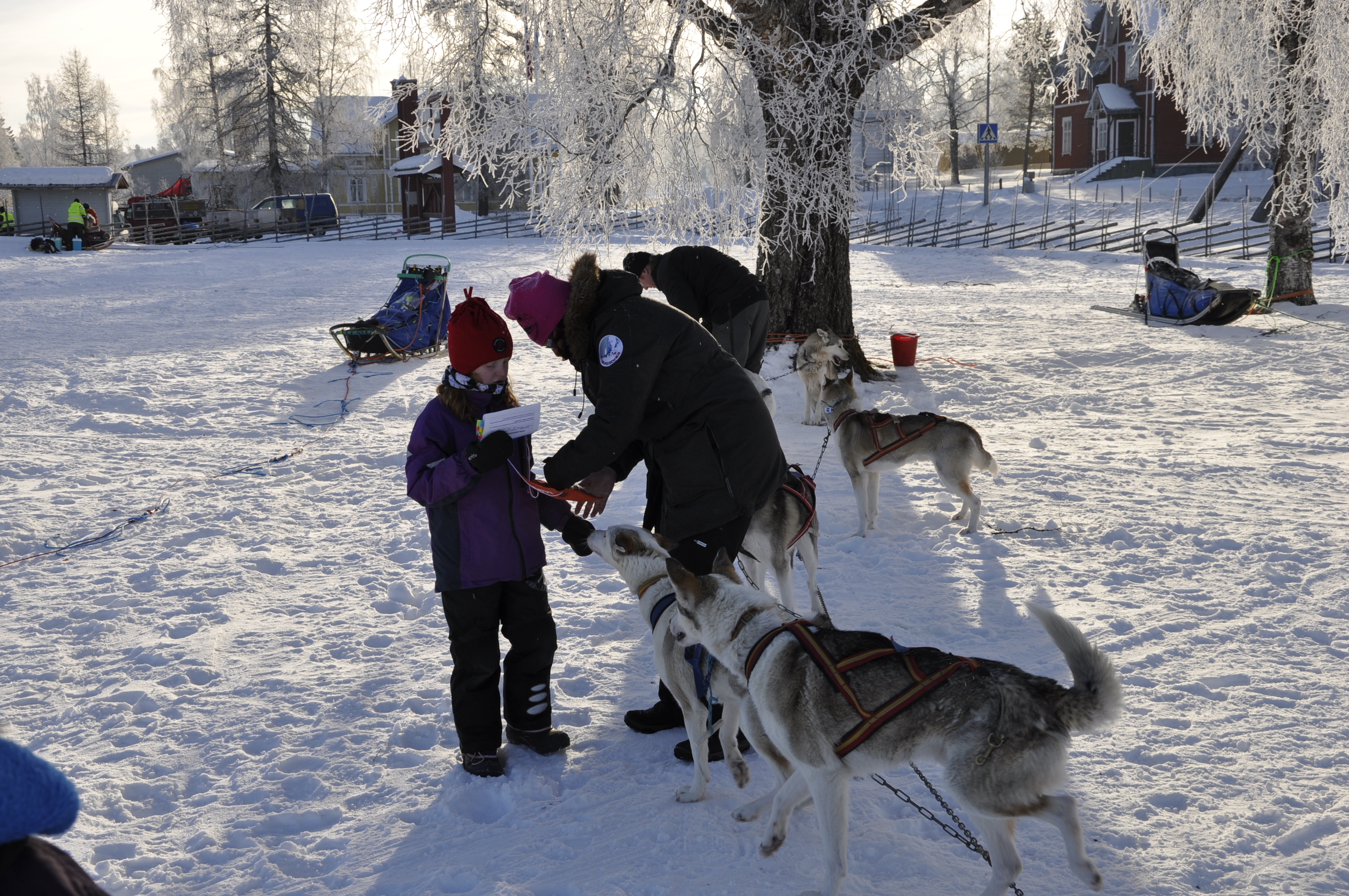 Emilie hjälper till före start, hon och Thea ser fram emot att komma till Särna, det har nästan blivit tradition, 2014 blir Jespers femte Polardistans.
