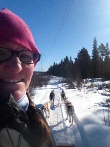 Nu är årets tävlingar överstökat och fokus ligger på att få lite form på unghundarna att de kan hänga med på lite längre utflykter. Idag körde jag ca 13 km, en av de längste sträckor de har sprungit. Det gick superbra, båda killarna vill gärna jaga på i galopp från start men på slutet travade de fint i lugnt tempo. Solen värmer bra nu och vi fick ta lite paus då och då att de kunna äta lite snö…