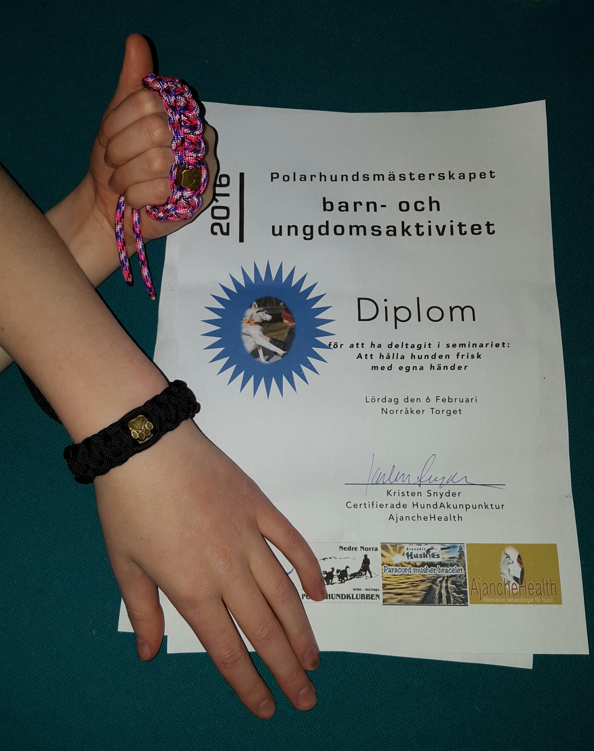 Efter dagens heat holdt Kristen Snyder, AjancheHealth, i en liten utbildning i att hålla hunden frisk med sina händer och de fick massera den hund de hade med sig. Efteråt blev det diplom och ett fint armband från Asavakit Husky, en mycket uppskattat aktivitet 👍