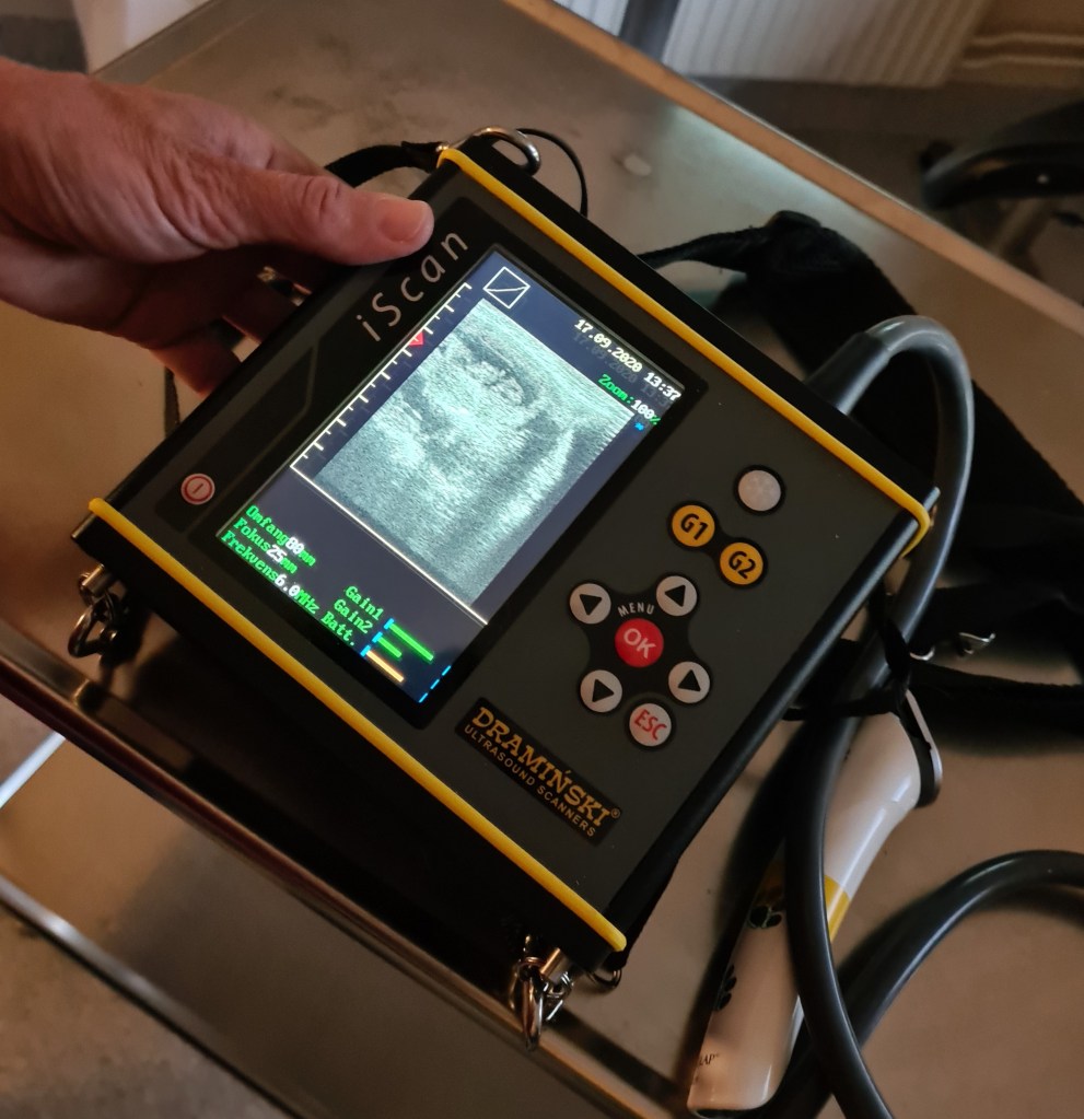 Idag har Emilie och jag varit till veterinären med Naja. Ingen tvekan om att hon är dräktig, syntes direkt när hon satte på ultraljudet 🥰