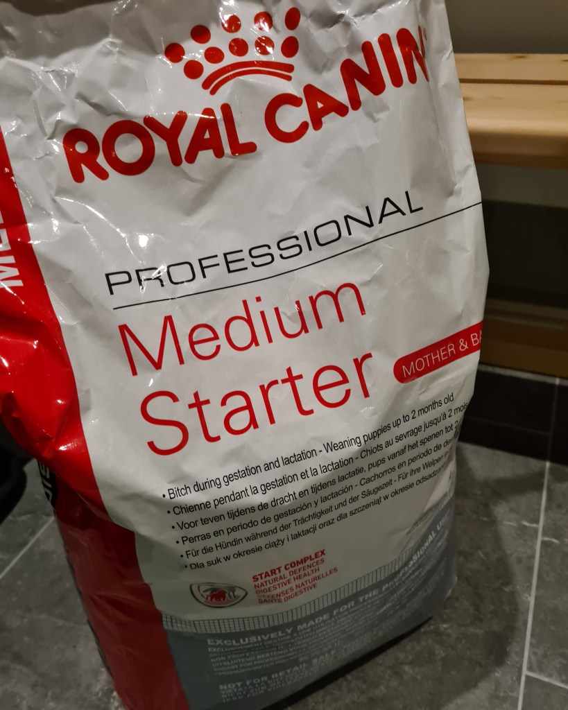 Vi håller på att fasa in ett anpassat foder för mamma/valp, ett foder som Naja kommer få från nu och under perioden hon producera mjölk.