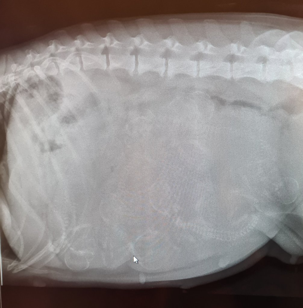Och hur många valpar är det då? Jo helt säkert 7, troligen 8 och kanske kan det finnas 9. Två veterinärer och en assistent kollade, ni kan ju testa och räkna lite själva 😅
