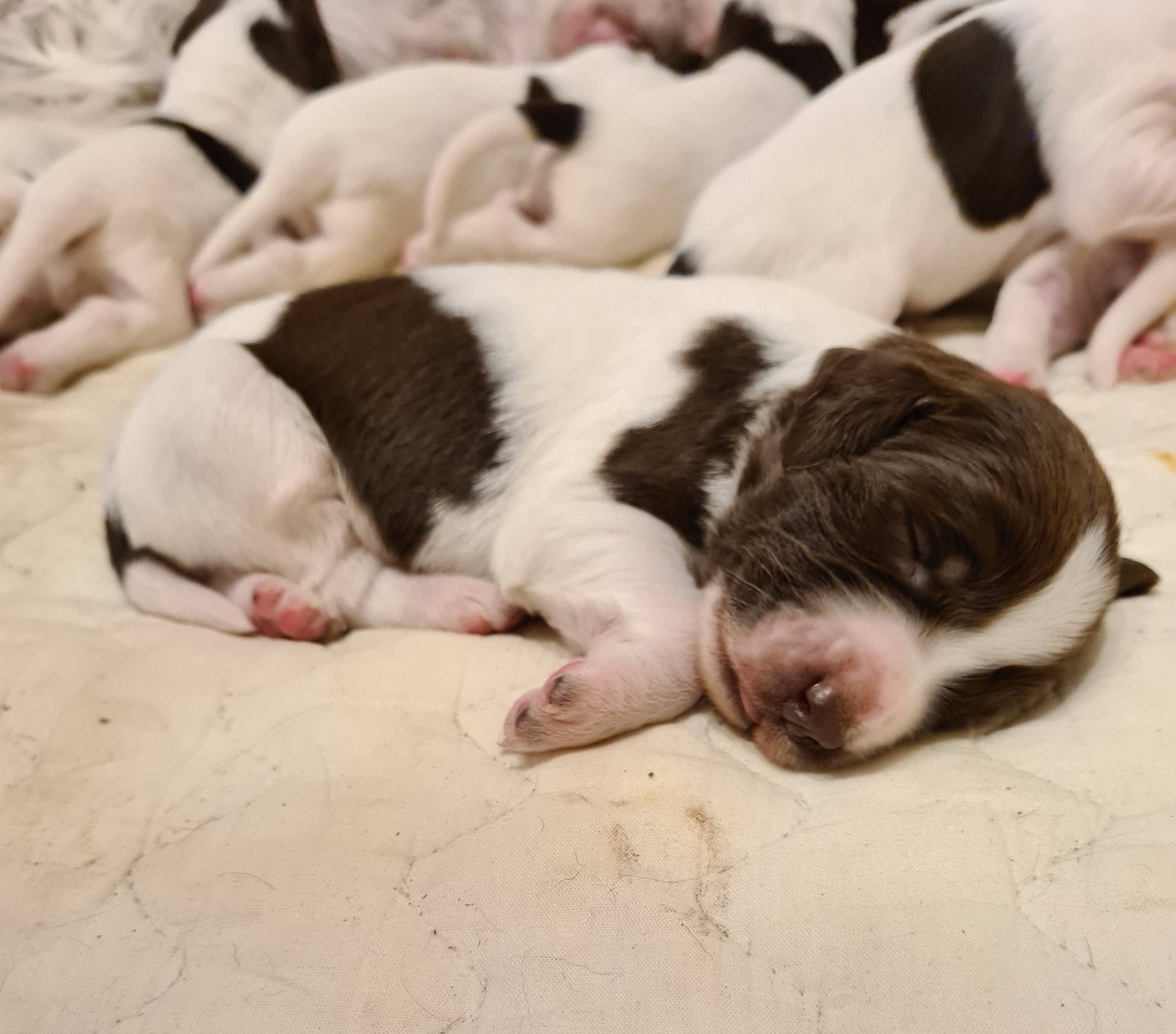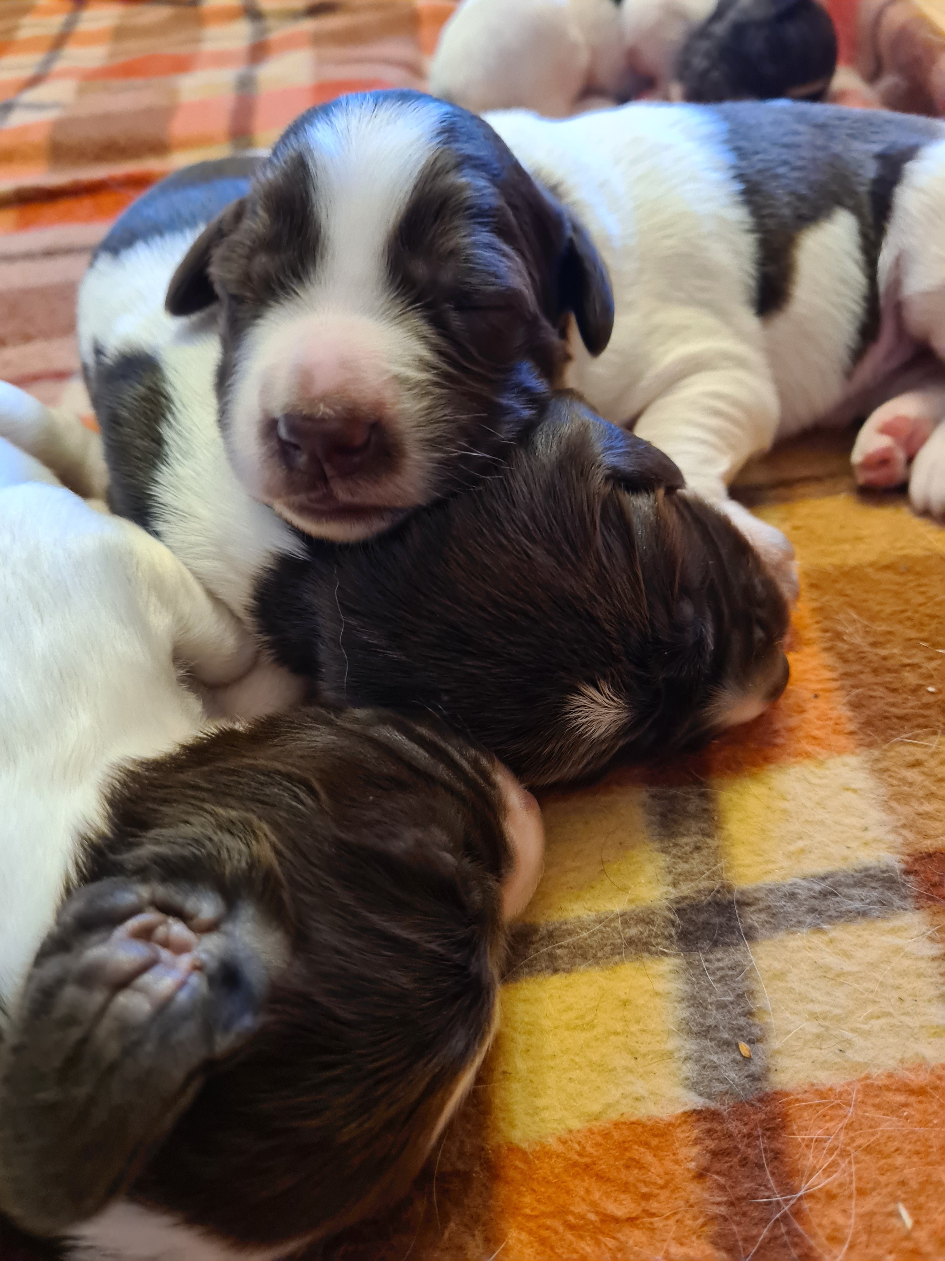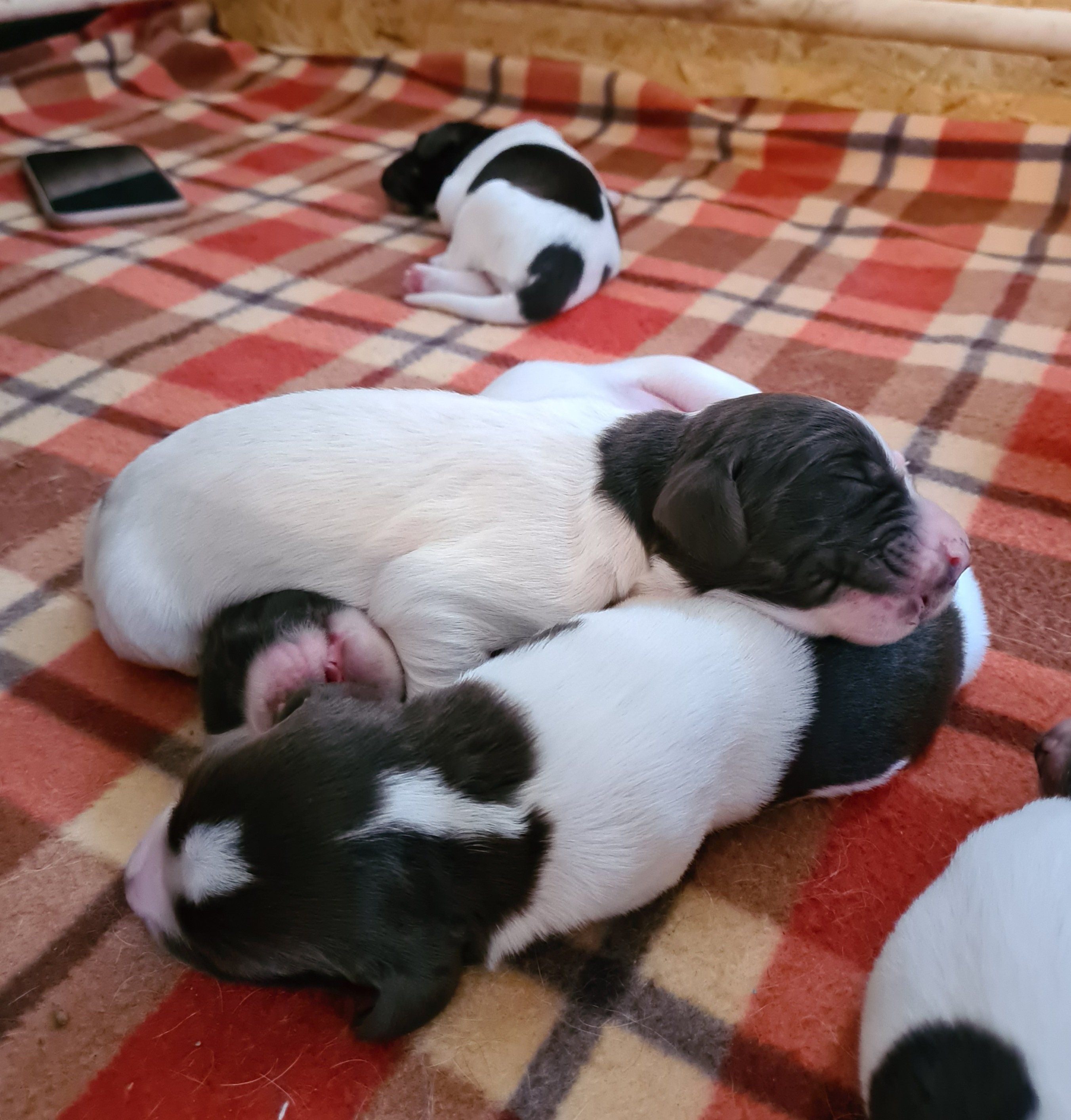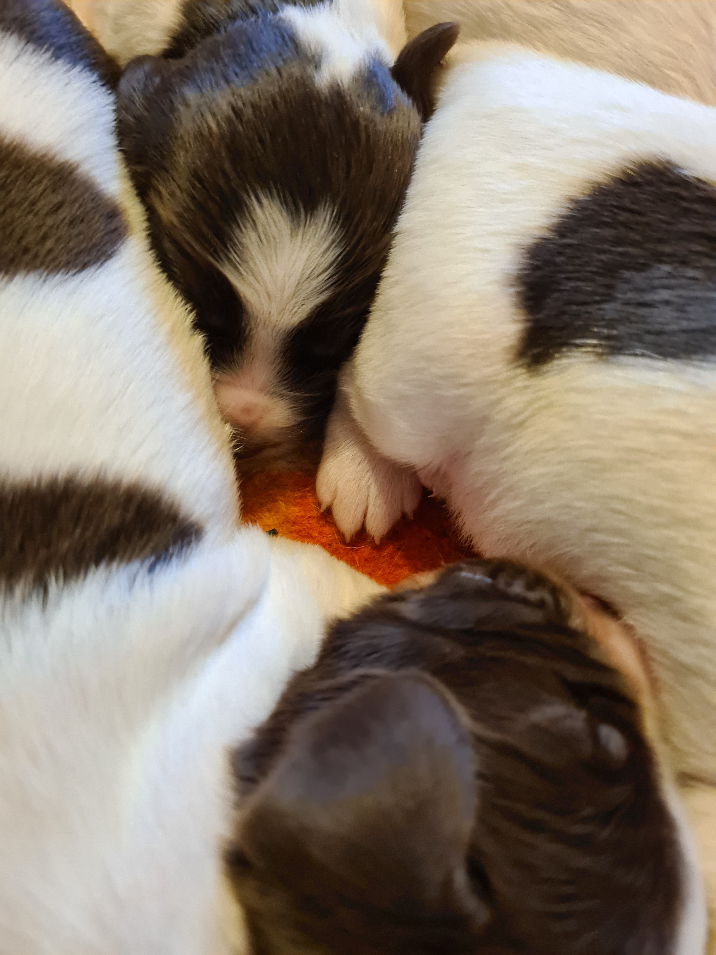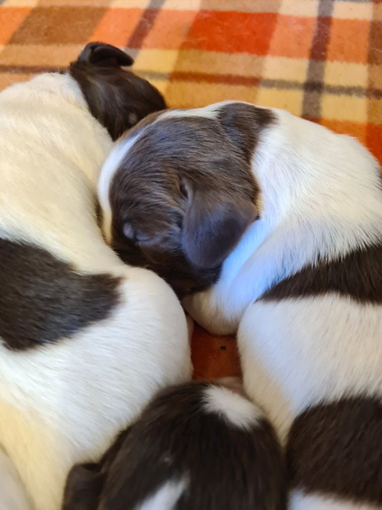 De första par dygn har varit intensiva, nu verkar de må bra och börjar hitta lite rytm – äta och sova. Ett par av tikarna var lite mindre så där har vi hålla lite extra koll på vikten, nu har både ökad i vikt så det känns bra. Naja ligger med dom i köket och vi turas om att sova i vardagsrummet att vi kan höra om Naja skall ut eller om något är på tok i lådan, detta samtidigt med att vi jobbar, ser framemot helgen!